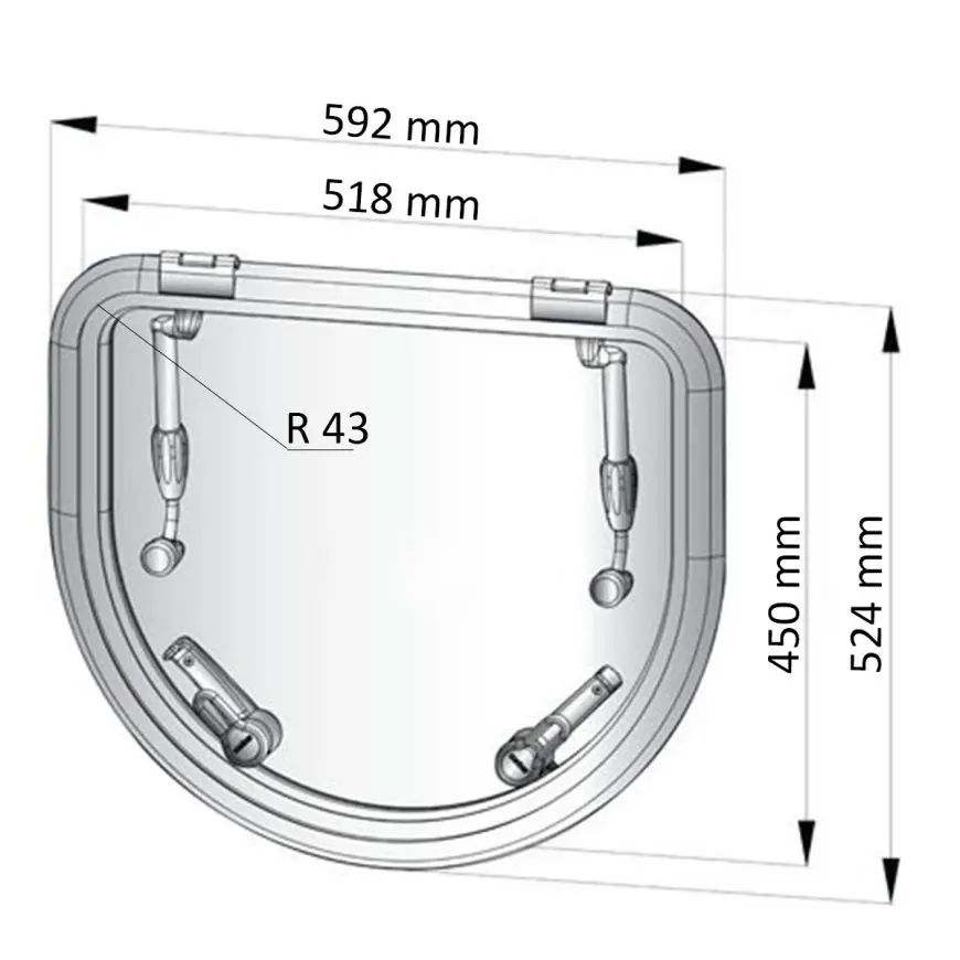 Vetus Altus luge-serien er udviklet med fokus på både sikkerhed, komfort og lang levetid i krævende maritime miljøer. Med et ydermål på 592 x 524 mm er denne model velegnet som dæksluge, hvor der stilles krav om både styrke og tæthed, eksempelvis på både der sejler i åbent hav.