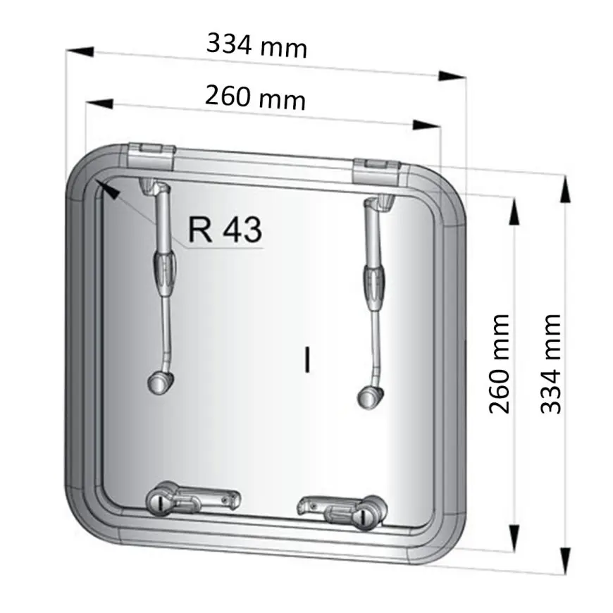 Altus-lugen fra Vetus er udviklet til horisontal montering på dæk og opfylder CE-kravene i henhold til A2-klassificeringen. Med et ydermål på 334 x 334 mm og udskæringsmål på 26 x 26 cm er denne model velegnet til både, hvor pladsen er begrænset, men kravene til sikkerhed og holdbarhed stadig er høje.
